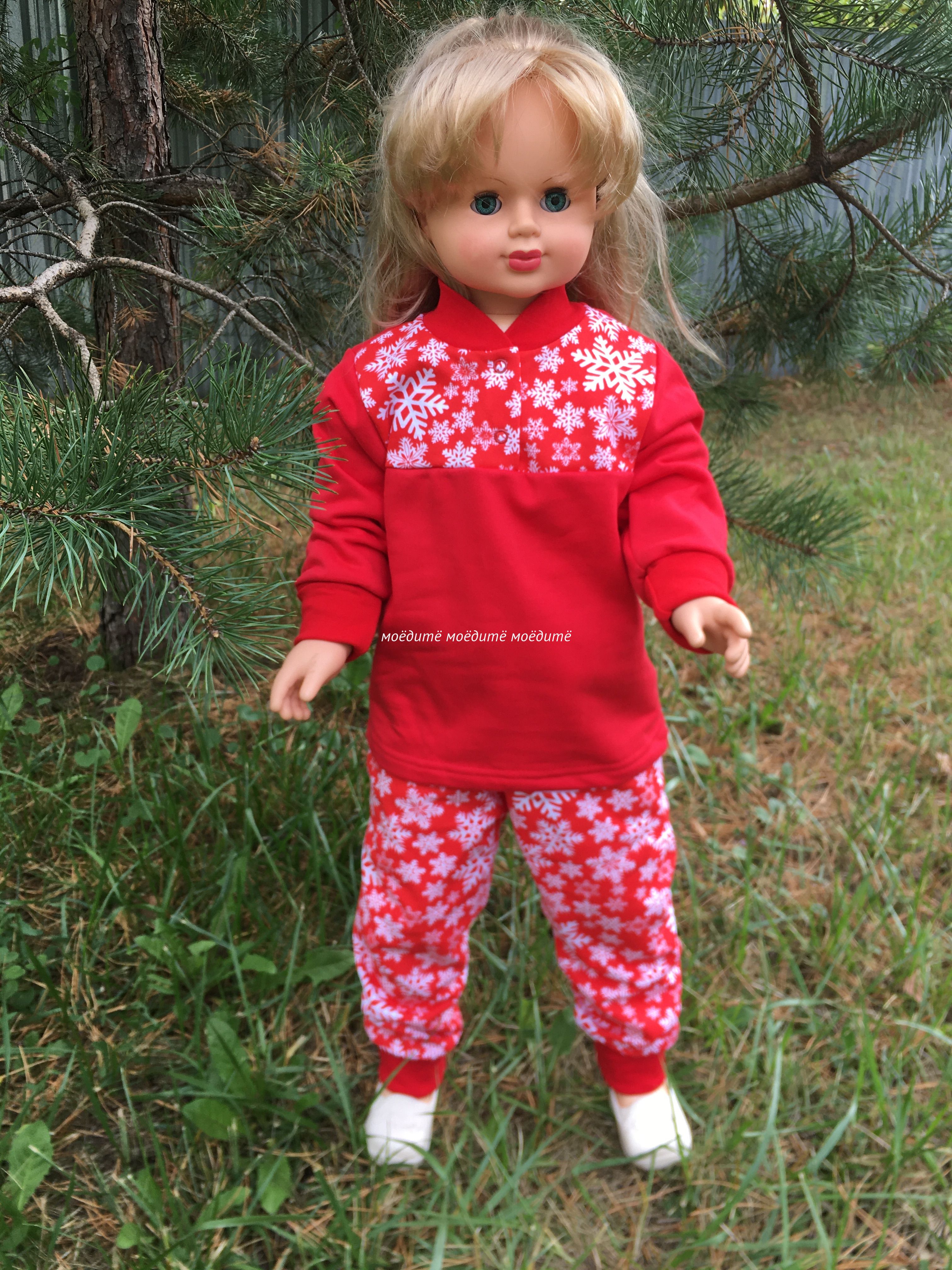 "МоёДитё" костюм домашний футер с начёсом "Снежинки" ПЖ157 красный "Магнолия" в Миассе